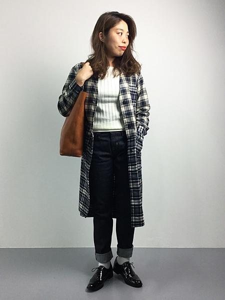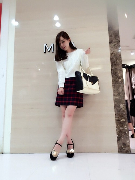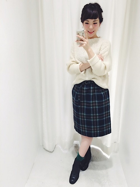 ホワイトニット×チェックは冬の定番ガーリーコーデ。