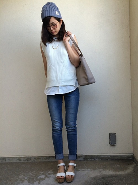 ショートパンツは白ニットの雰囲気の幅をもっと