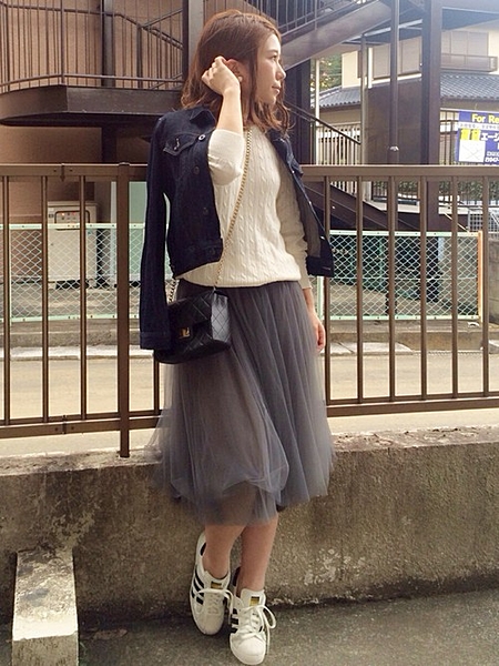 たっぷりのふんわりチュールがガーリーなコーデにしてくれる♡