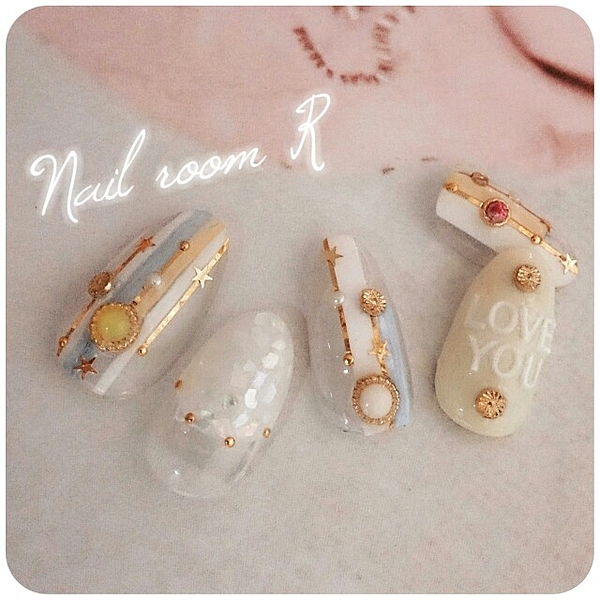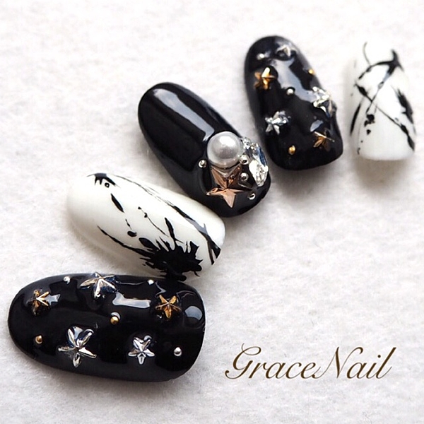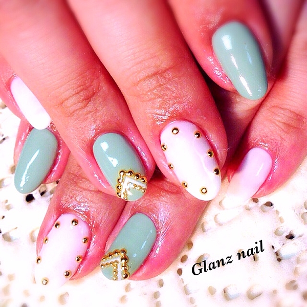 いろいろなスタッズを組み合わせたおしゃれなネイルです。
