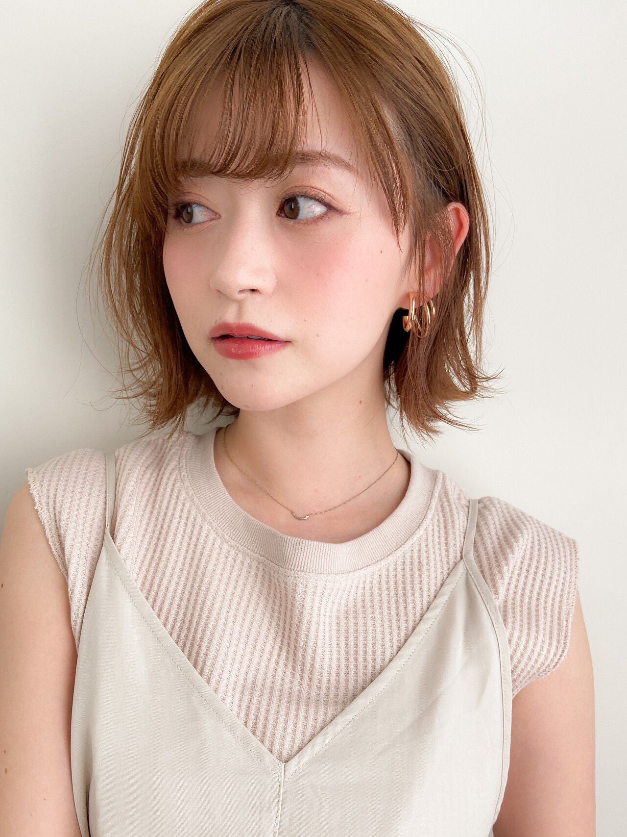 切りっぱなしボブをナチュラルに仕上げたいときは、素髪感を出したスタイリングが◎。ヘアオイルやワックスをつけて手ぐしで無造作な毛流れをつくるとおしゃれです。