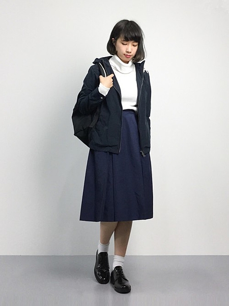 モノクロといえば年中使えるカラーコーディネートですよね。黒と白で作るのはとってもクールです。しかし、せっかく季節も変わるんですから、もう少し色のトーンを秋に寄せませんか?いつも黒を取り入れてたところにネイビーを置いて、ネイビー×白のコーディネートを作りましょう!