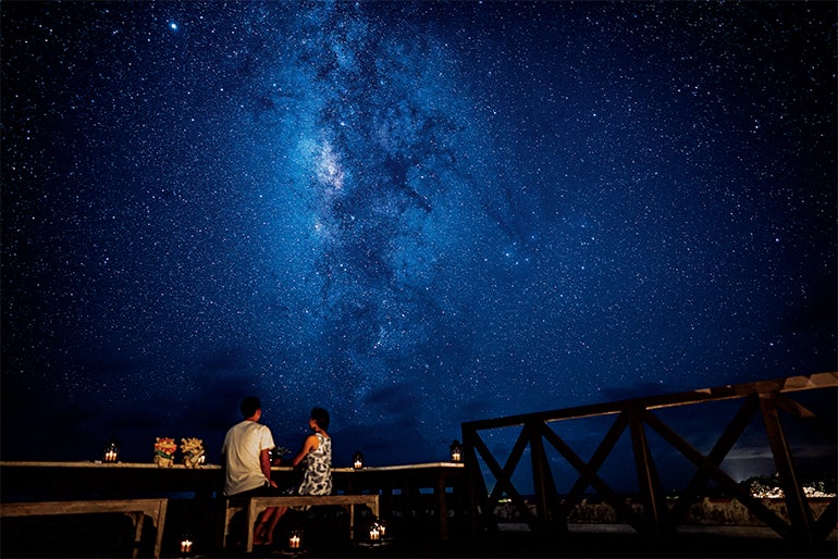 ▲はいむるぶしのビーチに隣接する「星空Café」の屋上の展望スペースは、沖縄の星空に抱かれる特等席。