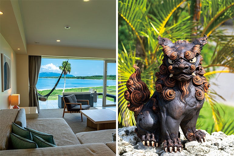 ▲左/オーシャンビュースイート。右/シーサーがお出迎え。