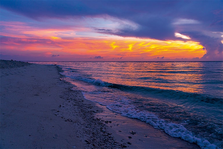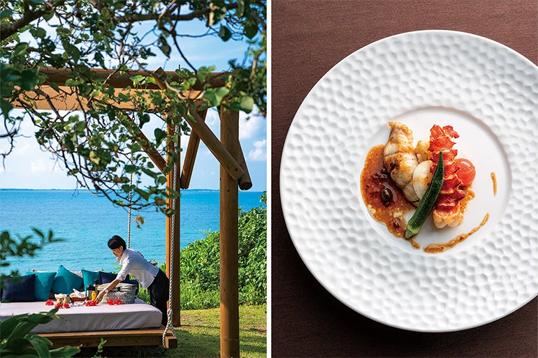 スマートフォンのライトを頼りにデッキチェアに寝転び、しばらく目を閉じる。暗闇に慣れた頃に目を開けると、そこは無数の星たちがきらめく宇宙。大袈裟ではなく、本当に自分が宇宙の一部になったような不思議な気持ちに包まれてしまった。12月から6月頃は、南の水平線の上に、ホテルの名前にもなっているはいむるぶし(南十字星)が見えるという。