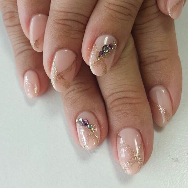ベージュフレンチはリボンのキラキラパーツで