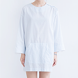 個性ある首元の大きなタックとワイドドルマンのボリューム感が魅力のビッグブラウス。