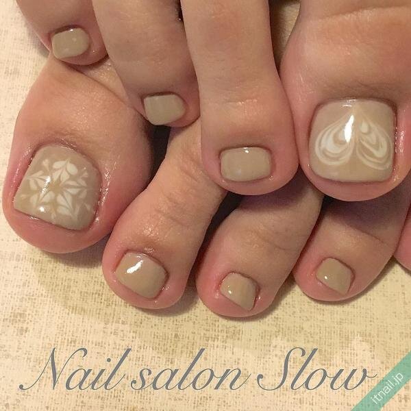 ハンドネイルにもぜひ取り入れたいデザインですが、小さい爪にアートはボヤけてしまいそうなら、フットネイルの親指に大きくラテアートしてみましょう。