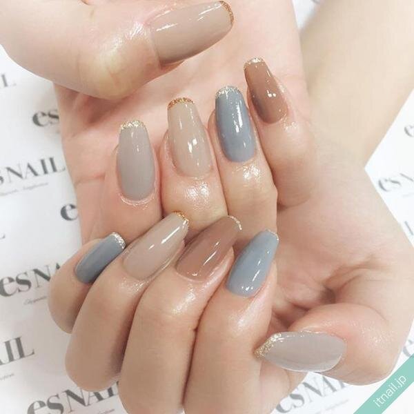 意外とも思われてしまいそうなブルーをあえて合わせて、ワンランク上のカフェカラーネイルに仕上げましょう。