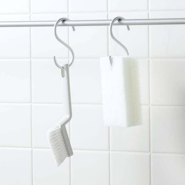 お風呂掃除用のスポンジは、穴が開いているのでフックで引っかけて収納できます。どれも共通して白い素材を使っているため、変色が目に見えて、替え時がわかりやすいのもうれしいポイントです。