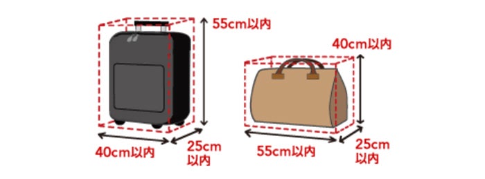 ・100席以上:高さ55×幅40×奥行き25cm以内/3辺の合計が115cm以内(30L前後)