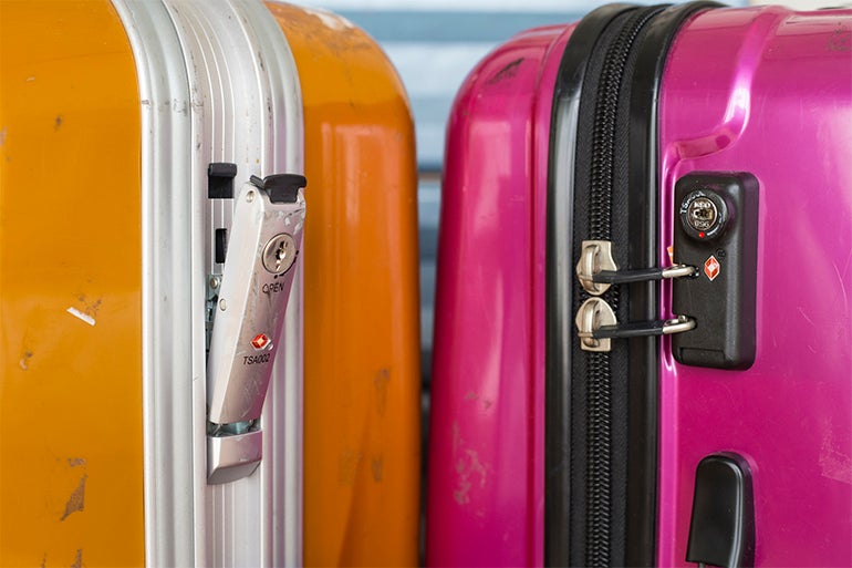 スーツケースのカギにもいくつか種類がある。いわゆる「キーロック式」は、開閉部分についている鍵穴に、付属の鍵を差し込んで開閉する昔ながらのタイプだ。「ダイヤルロック式」は、3桁のダイヤルに自分で暗証番号を設定して使う。
