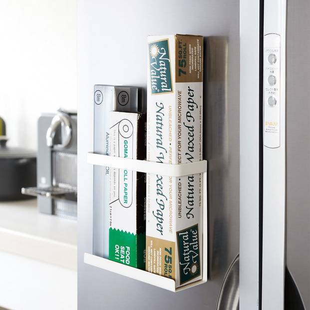 冷蔵庫に磁石でぴったりくっつくキッチンペーパーホルダー。置き場に困らず、使用する際も使いやすくて便利です。台の上に置かないから、キッチンの作業スペースを広く使うことができますよ。