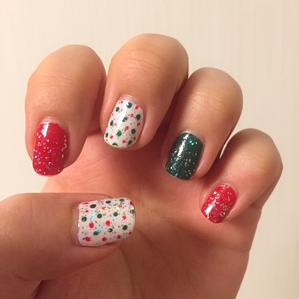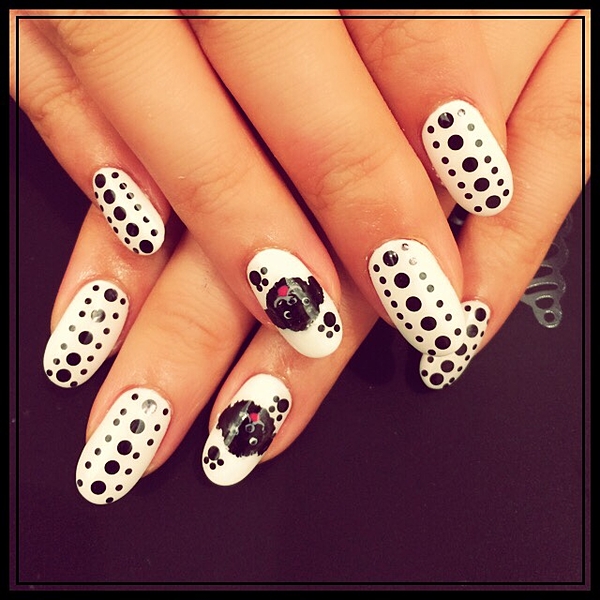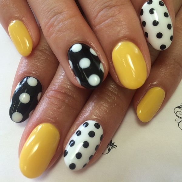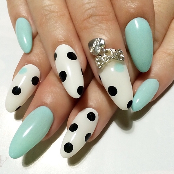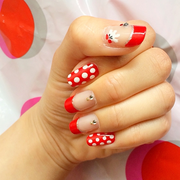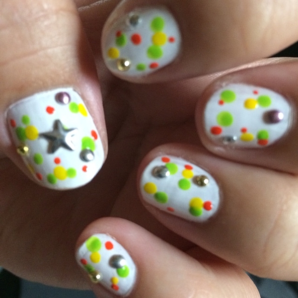 白地に黒のドットだけど、他の指にアクセントがあってかわいい♡