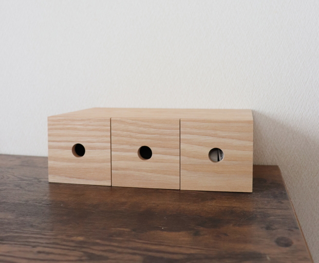 細々としたモノしか入りませんが、デスク周りにはちょうどいいサイズ感です。