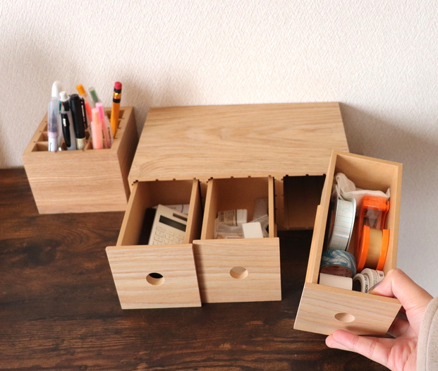 MDFの収納用品は今回紹介した小物収納3段以外にも、ペンスタンドや収納トレーなどたくさんあります。