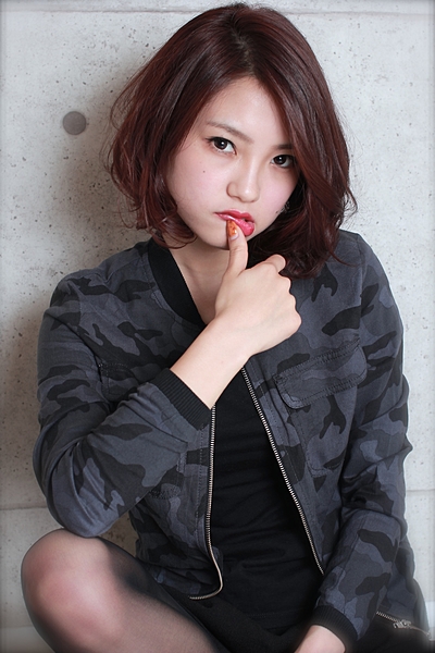 クールなショートボブには、艶感たっぷりでほのかな色気が出るレッド系カラーを。絶妙な甘辛バランスが◎。