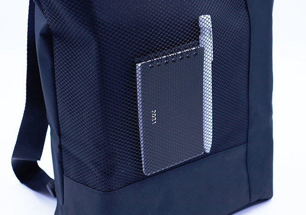前面には活用度の高いメッシュポケットが搭載されていて、さっと取り出したい小物をいれておくのに便利です。