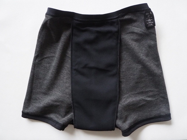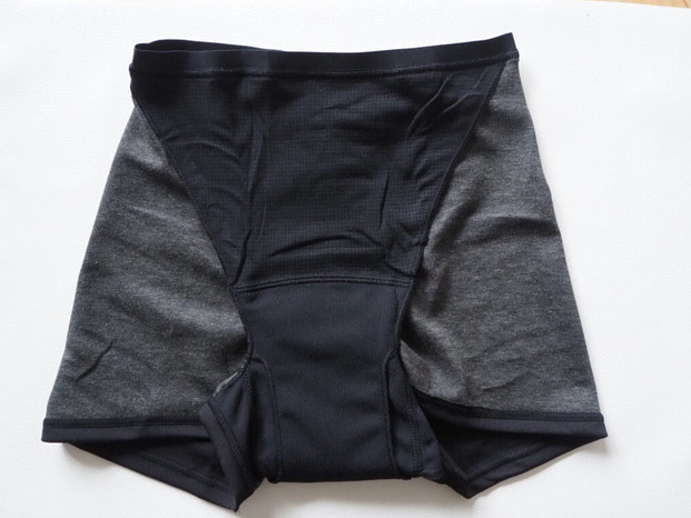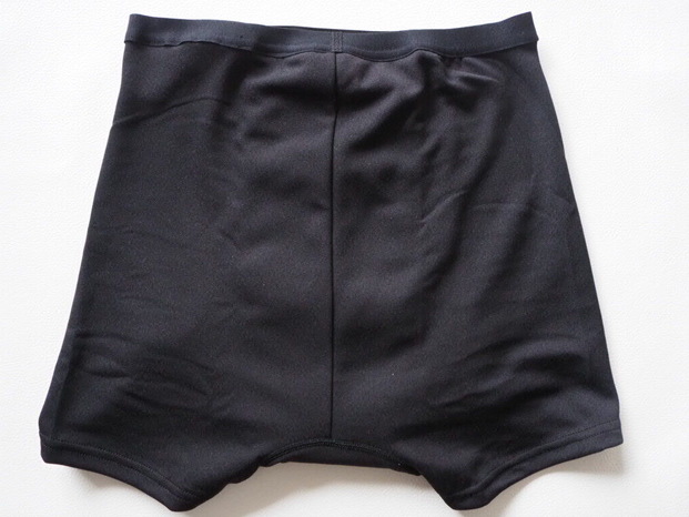 裏返すと、前から後ろまで一体となったクロッチが付いています。これなら後ろモレも防いでくれそうです。