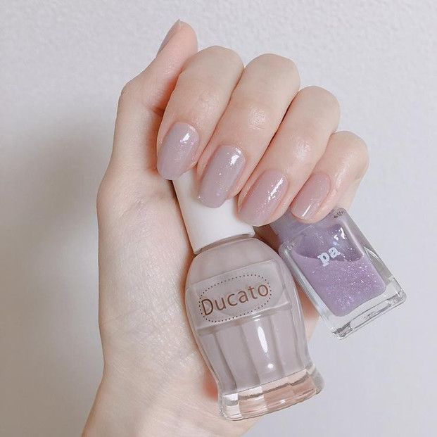グレーのマニキュア1つで簡単にセルフネイルができちゃうクリアネイル。