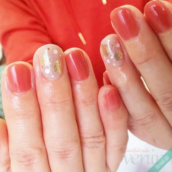 例えば、クリアカラーをベースにメタリックゴールドの雪の結晶をアートしたデザインはいかがでしょうか。描いた雪の結晶のまわりにホワイトやゴールド、シルバーの丸ホロをあしらって、舞い降りる雪を表現するアレンジも素敵です。