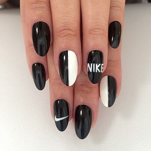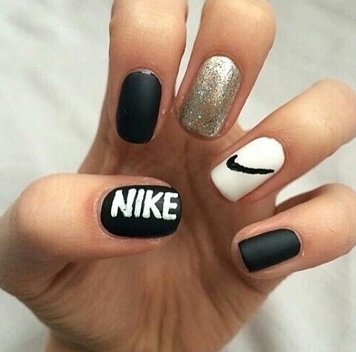 モノクロにシルバーがアクセントとなったナイキのロゴネイル