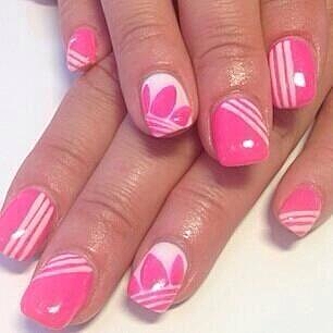 女の子らしいキュートなピンクネイルはアディダス柄で元気に♪