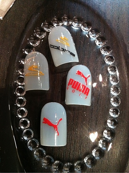 ロゴ部分がクリアになったネイルはシンプルで洗練されたデザイン