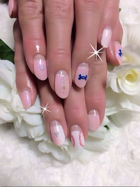 ゴージャスで可愛いチャンピオンネイルはブルー×ホワイト×レッドで決まり*