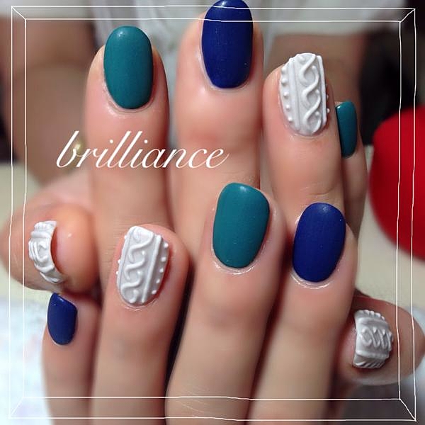寒〜い季節だからこそできるこのデザイン。冬のネイルはケーブルニットをinして可愛く