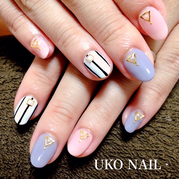 基本パステルパープルのネイルに、