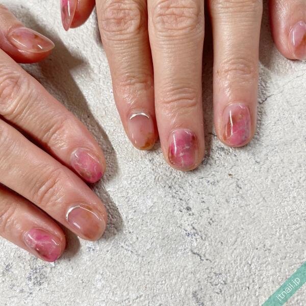 指先に優しい雰囲気を漂わせるピンクネイル。今っぽいデザインでオシャレに彩るのもおすすめです。こちらはスタイリッシュなニュアンスピンク。色同士が混ざり合う様子にうっとり気分が味わえますよ。
