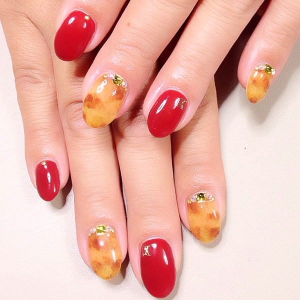 見頃になったもみじのように色鮮やかなネイル。