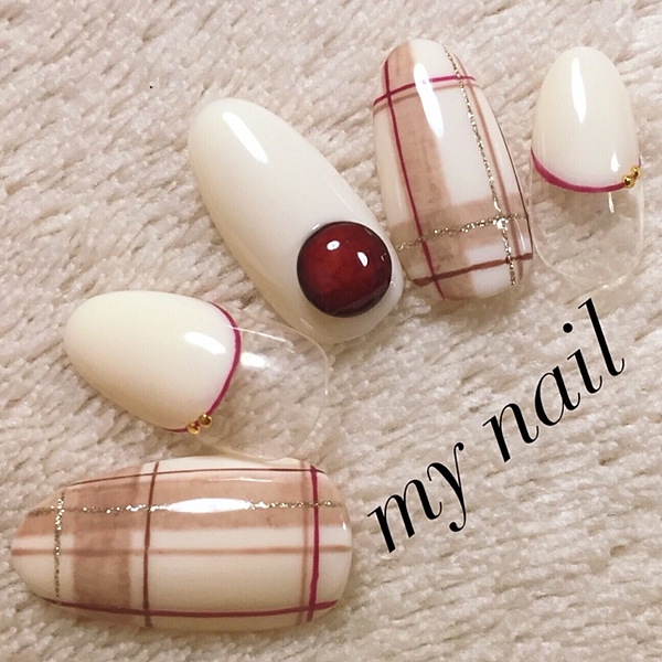 ほっこり優しい印象のブランケットの様なチェックネイル。
