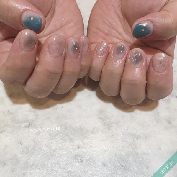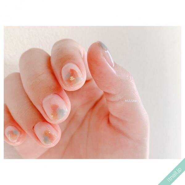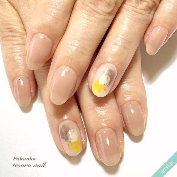 ナチュラルなネイルが好きな人や、はじめて塗りかけネイルに挑戦する人におすすめのワンポイントアート。ヌーディネイルに取り入れると一気に手元が垢抜けますよ。色同士を重ねて、上からスタッズをのせるのもオシャレ。