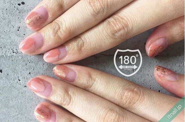 色味の近い濃淡ピンクで爪先に描く塗りかけネイル。手元になじむカラーだから派手に目立つことがなく、さりげなくオシャレな表情が楽しめます。ホイルを重ねて奥行きを出すのも素敵ですね。