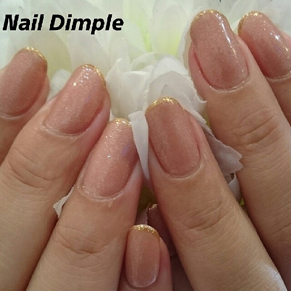 ベージュカラーにこまかいきらめきが込められたネイルカラー。