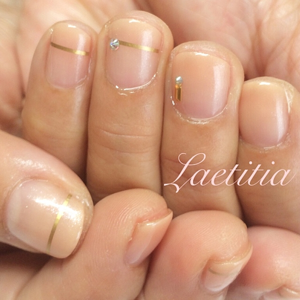 ゴールドの細フレンチデザイン。