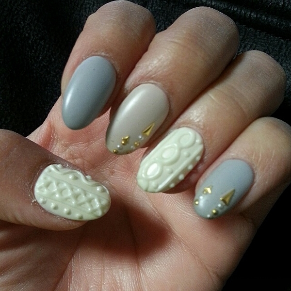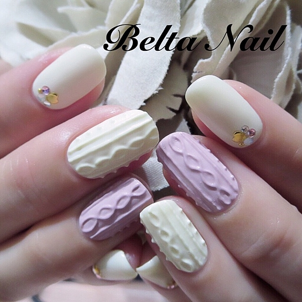 ピンクやブルーのパステルカラーとホワイトのニットネイル