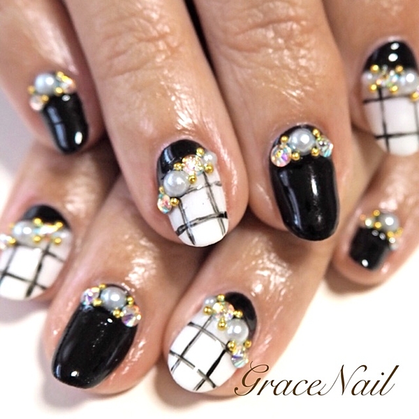ブラック、グレー、ホワイトでまとめたモノトーンネイル