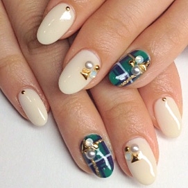 ホワイトの逆フレンチに、ボルドーとグリーンのアーガイル柄を小さめに入れて♪
