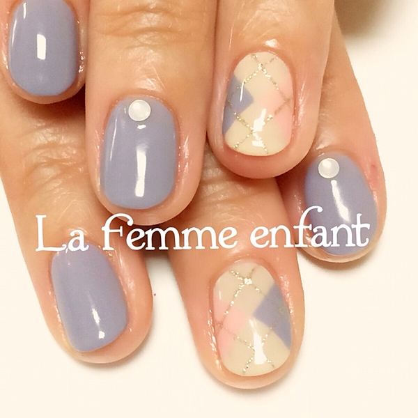 アイボリーベースに、グレーとピンクを加えてアーガイルに♪