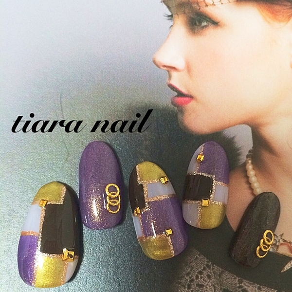 組み合わせたようなデザインのネイル。
