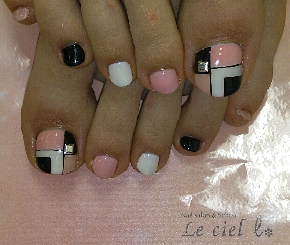 定番モノトーンのブロックネイル。