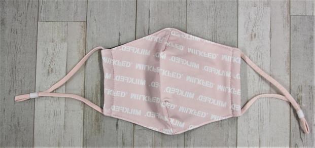 もうひとつのあったか温感マスクは、くすみピンク×総柄が大人かわいいデザイン。マスク裏面の生地は発熱機能を備えています。その発熱量はウールの約3倍だそう。また、さらっと肌触りがいいサンバーナー生地を使用しているので、つけ心地も快適です。