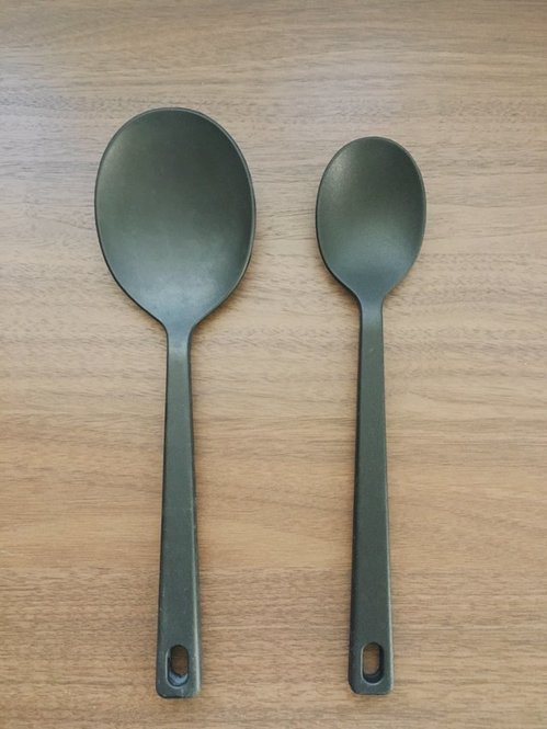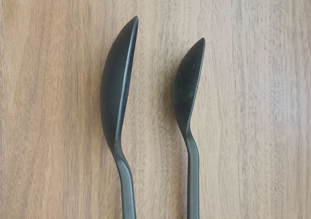 左が従来の調理スプーン。右は今回発売されたスモール版。比較するとこんな感じ。
