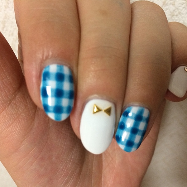 ドロシーがみにつけているギンガムチェックのワンピースとキラキラの赤い靴をモチーフにしたネイルです