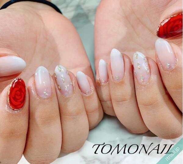 シアーなホワイトは落ち着いた側面も持ち合わせているので、トレンドアートをたっぷりとまとっても決して悪目立ちしません。大きめのシェルや立体的なメタリックアートも、画像のとおり大人上品な仕上がりに。