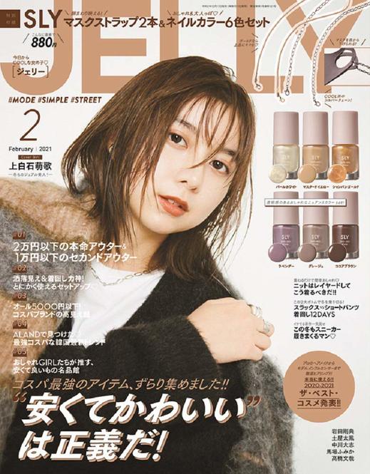 JELLY(ジェリー)2月号の付録は、SLY(スライ)とのコラボレーション。新しい耳元のおしゃれとして注目のマスクストラップと、ネイルカラーのお得なセットになっています。