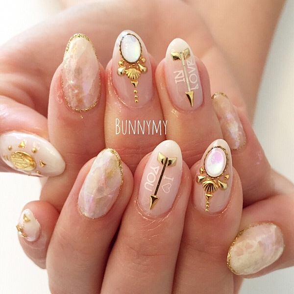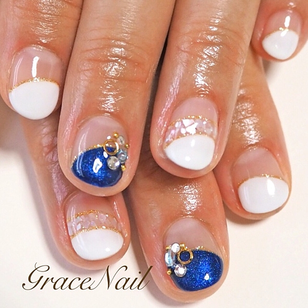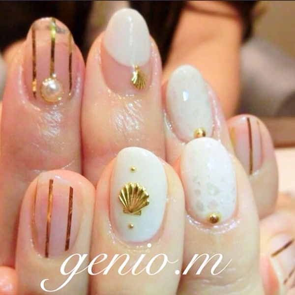 ホワイトシェルのフレンチと、ゴールドのシェルパーツが夏のビーチにぴったり♪